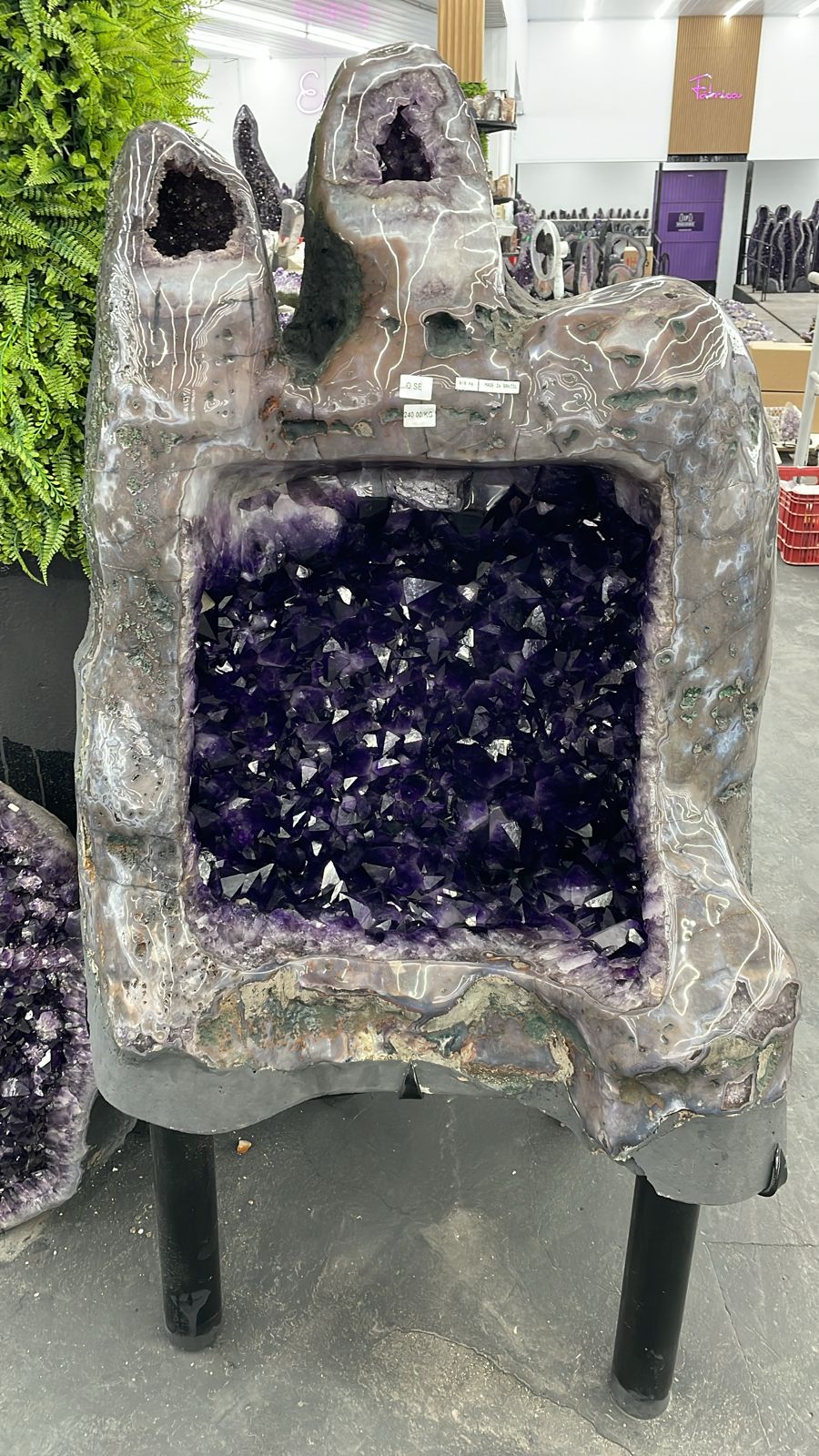 Experience the awe-inspiring scale of our massive amethyst specimens, weighing from 200lbs to 900lbs.